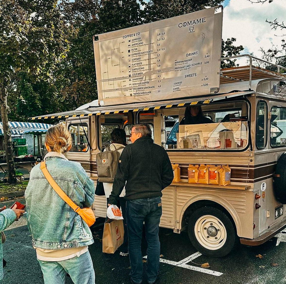 Zusätzlich sind unsere Kaffee-Oldtimer Teil unseres Konzeptes. Durch sie haben wir die Möglichkeit, euch überall mit Kaffee und frischen Bohnen zu versorgen. Egal ob Catering, Märkte oder Messen – vieles ist möglich. Sprecht uns an! caterings@comame.de